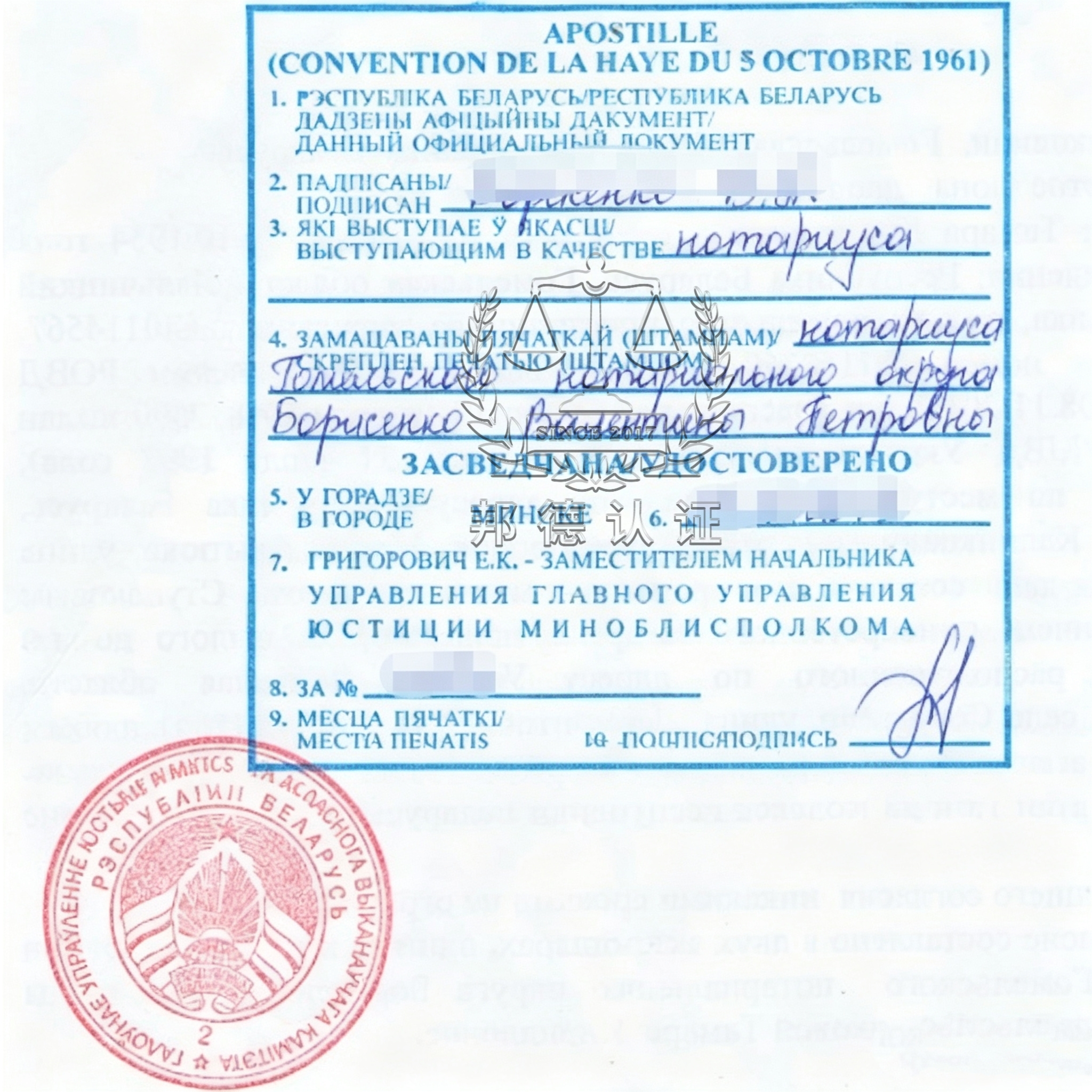 1. 第一步:当地公证:由白俄罗斯本地公证人或对应主管职能部门,对原始文件先行办理公证手续,确保文书真实有效。