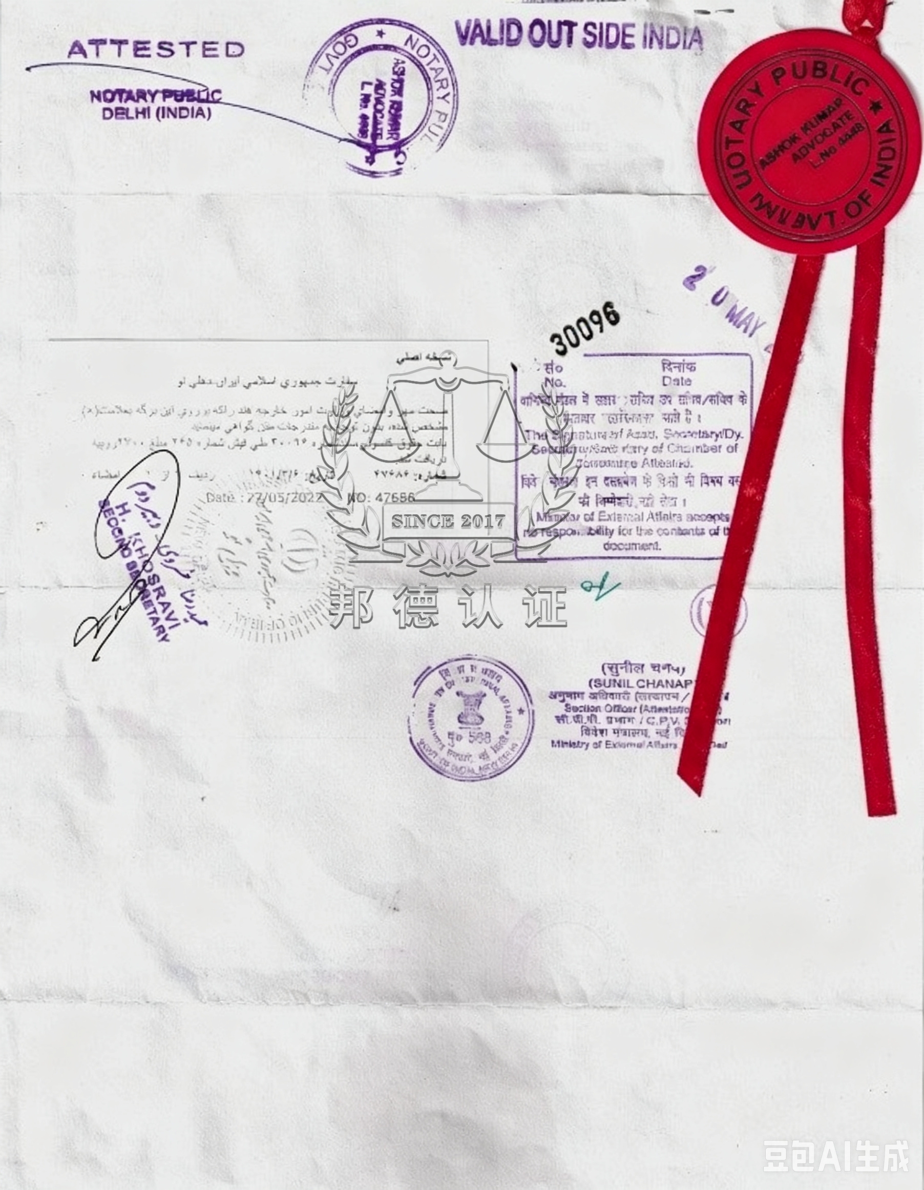 2. 伊朗外交部单认证 公证完成后,递交伊朗共和国外交部,办理本国层面的领事加签核验,确认公证机构资质合法有效。